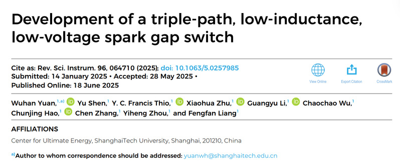 终极能源中心发表三通道、低电感、低电压火花间隙开关的研发